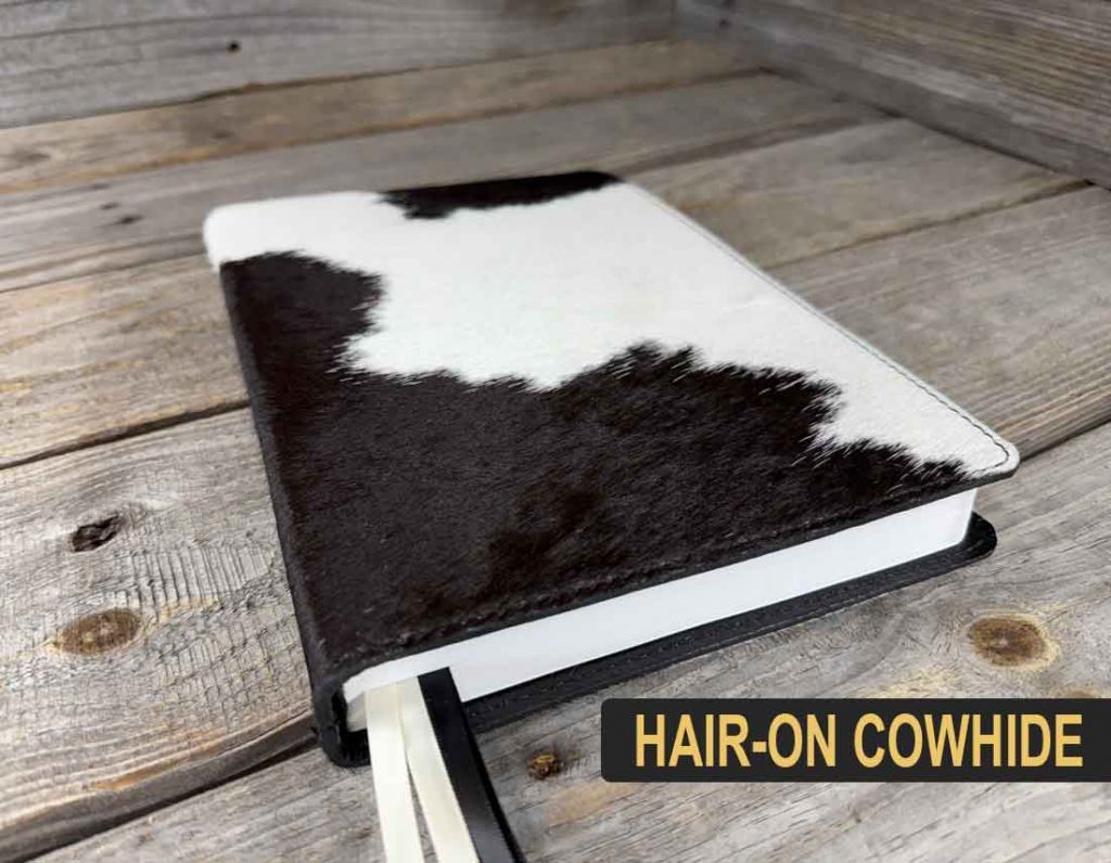 AA Leather is excited to now offer rebinds with our beautiful hair-on cowhide with a full grain cowhide leather liners! These covers are exquisite to the touch with a supple feel created from a leather liner and stitched around the border leaving an elegant clean finish! Pricing from $199