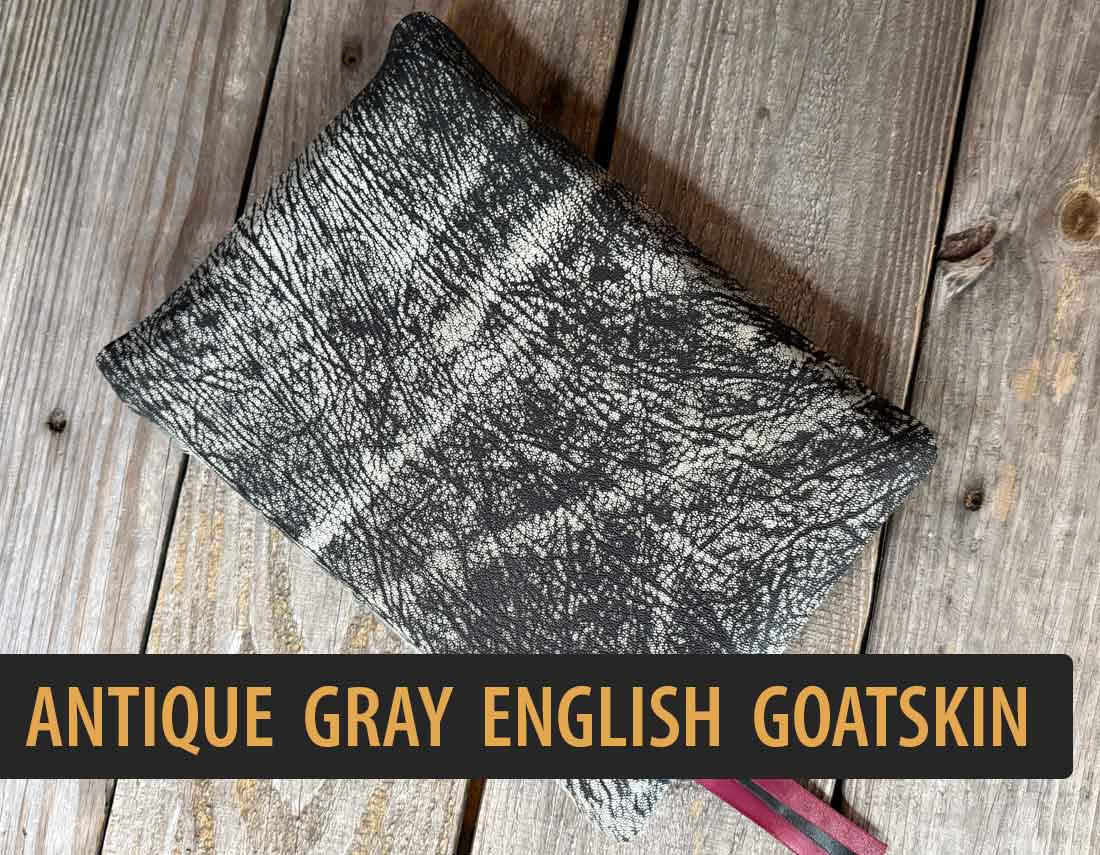AA Leather is excited to offer a new imported vegetable tanned goatskin from England. This goatskin is available is 5 colors: black, crimson, mocha, antique gray, and antique sandlewood. This leather rivals our popular Sokoto Goatskin with the beautiful river grain, great temper and durability to last generations, so it is a great option for heavily used Bibles.
